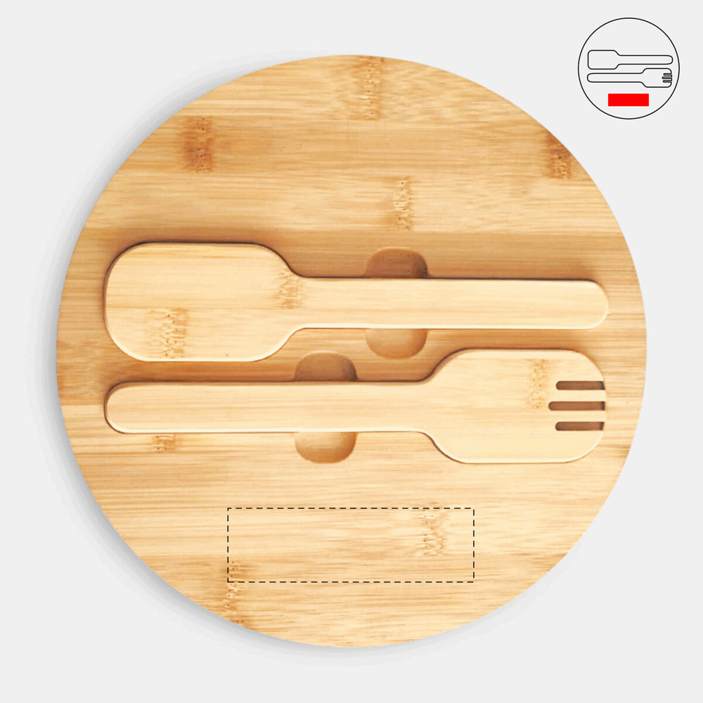 Slakom EAT HEALTHY: grote roestvrijstalen kom met bamboe deksel en bamboe slacouverts bevestigd aan het deksel met magneten, inhoud ca. 3 liter